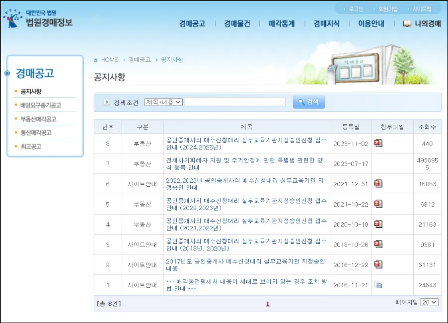 대법원 법원정보 사이트에서는 경매물건과 경매공고 등 경매에 관한 다양한 정보들을 알 수있습니다.
