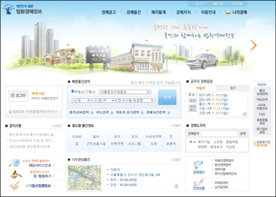 대법원 법원경매정보 사이트에서는 경매 물건을 확인할 수 있습니다.