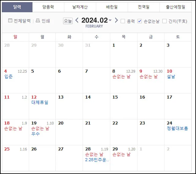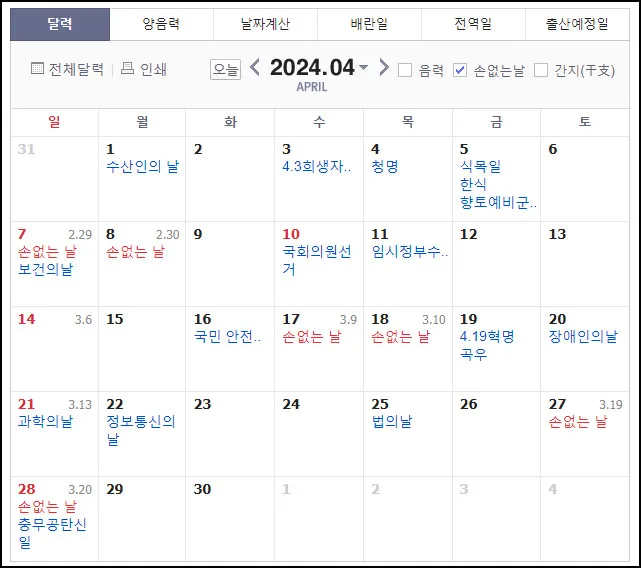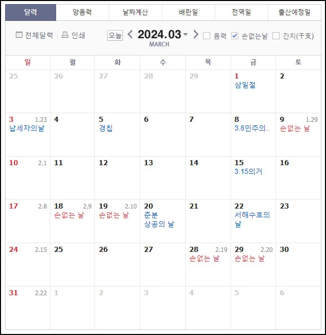 2024년 손 없는 날