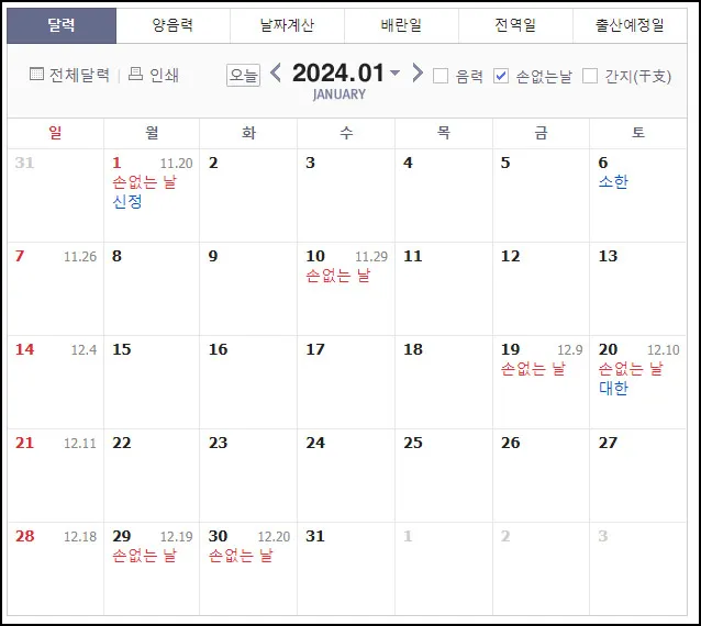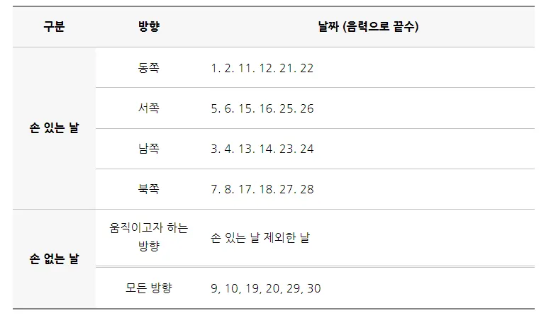 이사를 할 때 손 없는 날이 언제인지 확인을 하게됩니다.